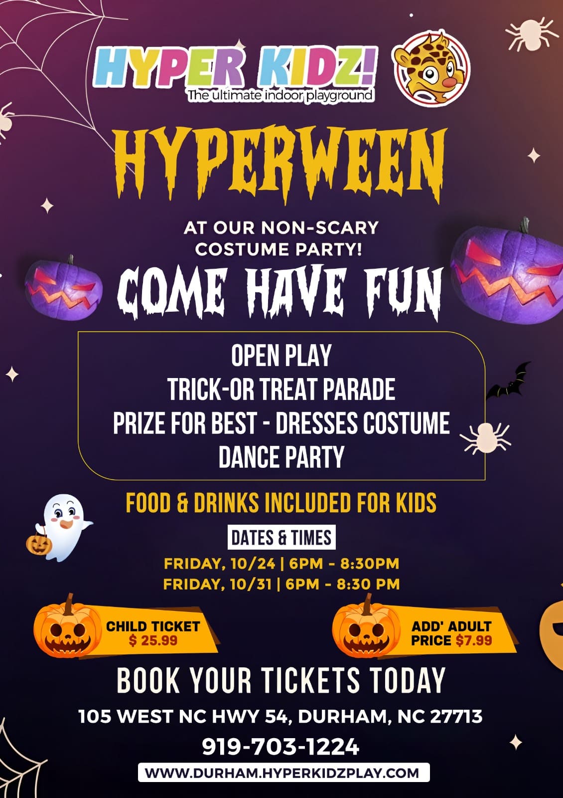 Play is the work of the child and is beneficial to their mind and body. Hyper Kidz offers a unique indoor playground for children to explore with a fun theme, plenty of fun attractions, and play zones that are safe and designed for different developmental age groups. Our 13,000 sq ft indoor playground is the perfect place to bring your child for open play or to host their next birthday party! We offer unlimited play 7 days a week for children ages 0-13. Come play with us!